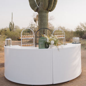 Would you beleive us if we told you that alllll of our bars are custom fabrictated in house? That's right, we build all our bars to ensure they are one-of-a-kind masterpieces that not only look beautiful, but function well for weddings and events. We even offer custom bar fabrication if you are wanting a specfic color to match your event or a funky shape or material! We take pride in these projects and they definitely look incredible in real life!